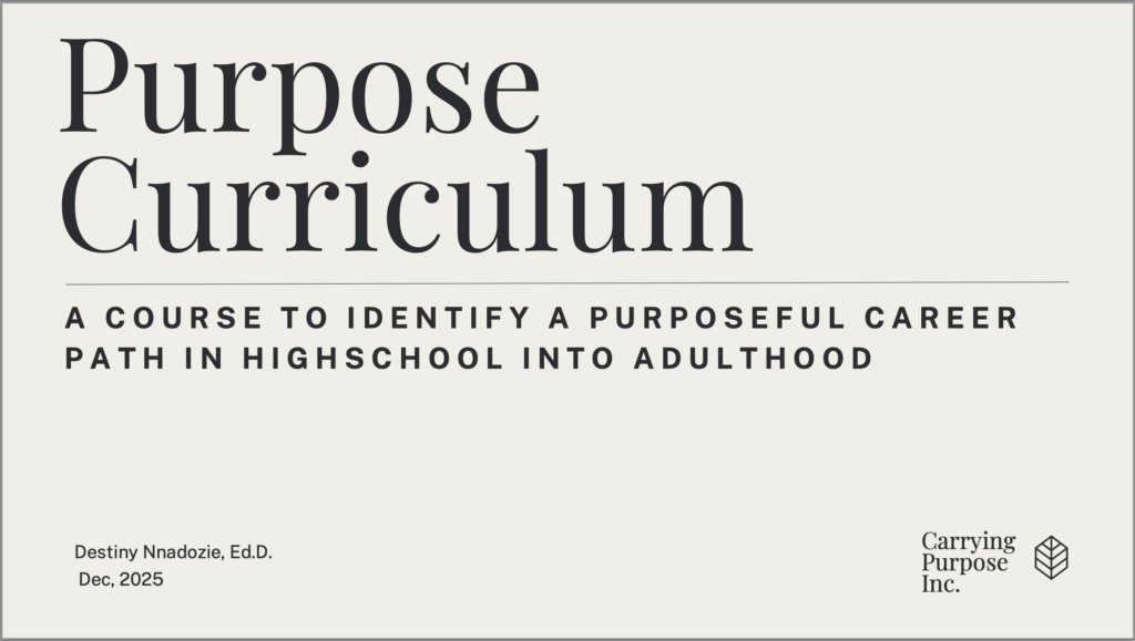 Purpose Curriculum is the first ever of its kind. This is a course designed to help students identify and plan toward their God given life purpose. Leaving students with the confidence to go after career path in adulthood that will truly make them gratified in life. If you are interested in purchasing this for use individually or within a school system. Please contact us.
